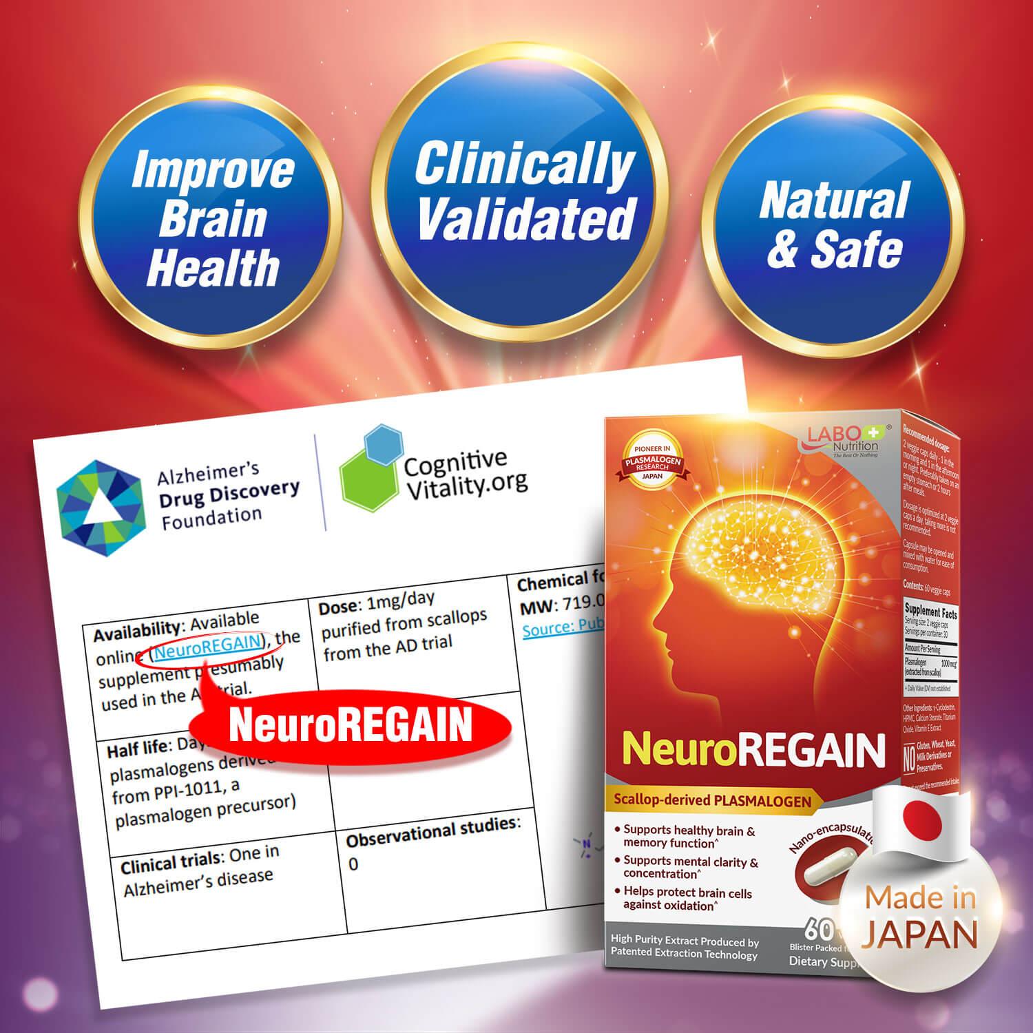 NeuroREGAIN is the ONLY scallop-derived plasmalogen formula in the market with this specific mix of