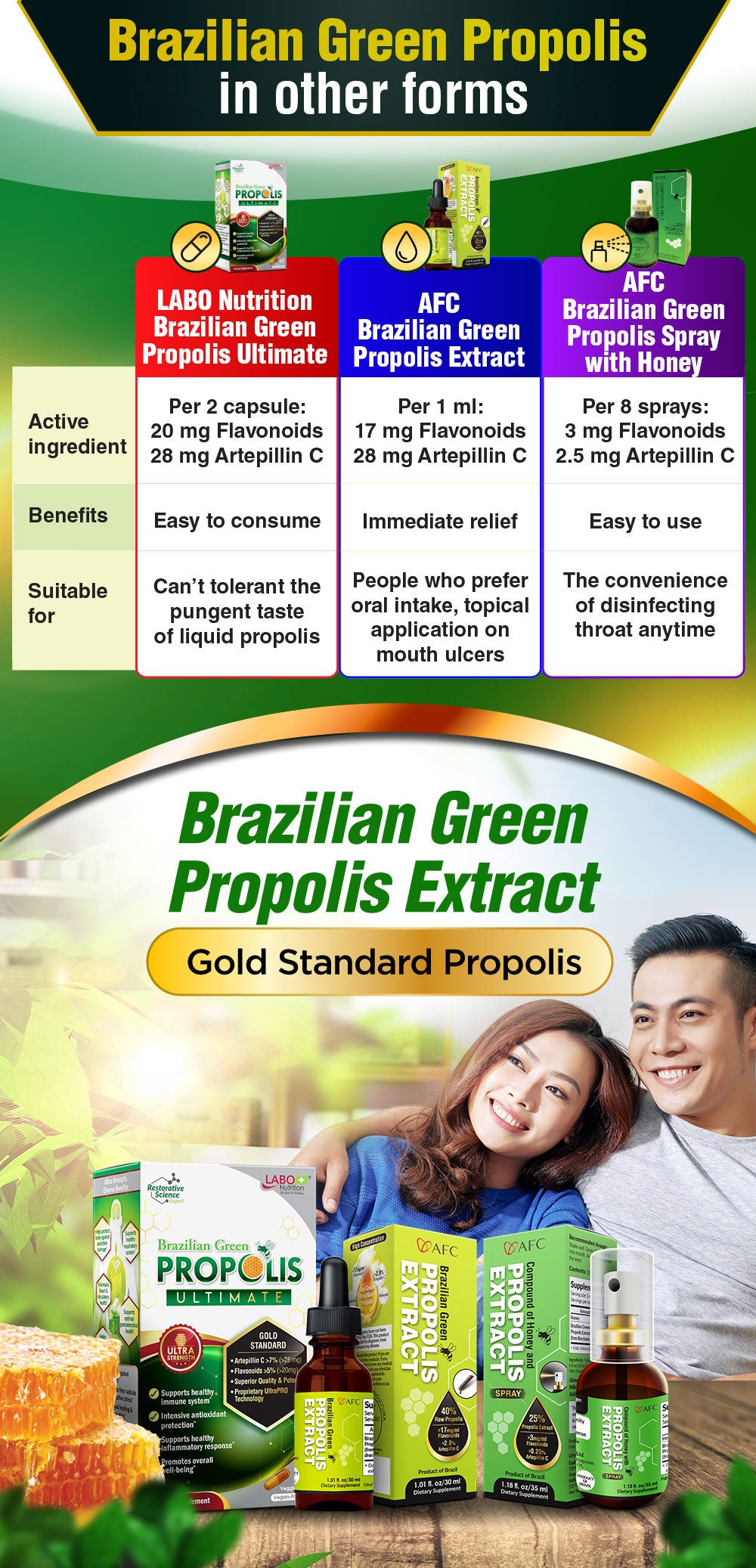 AFC Japan Brazilian Green Propolis Extract – Highest Artepilin C (>2.8%) & Flavonoids (>17mg/ml), Premium Quality, for Immune Booster, Tincture - Lifestream Group US