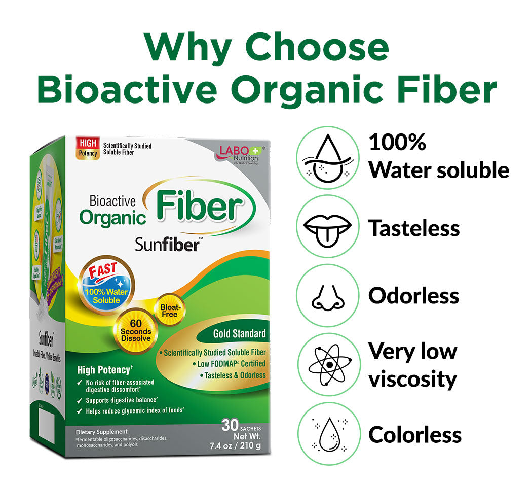 Many high-fiber foods are also high in FODMAPS. And FODMAPS are known to cause gas-related pain, constipation and/or diarrhea. Bioactive Organic Fiber is low FODMAP Certified product.