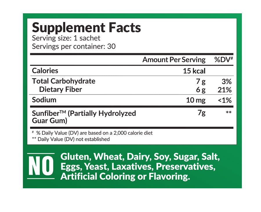 Most get just 10g-15g of fiber daily. Especially for those who follow a gluten-free diet, the fiber deficiency may be greater. Simply add 1 sachet (7g of Sunfiber) into your favorite beverage or food.