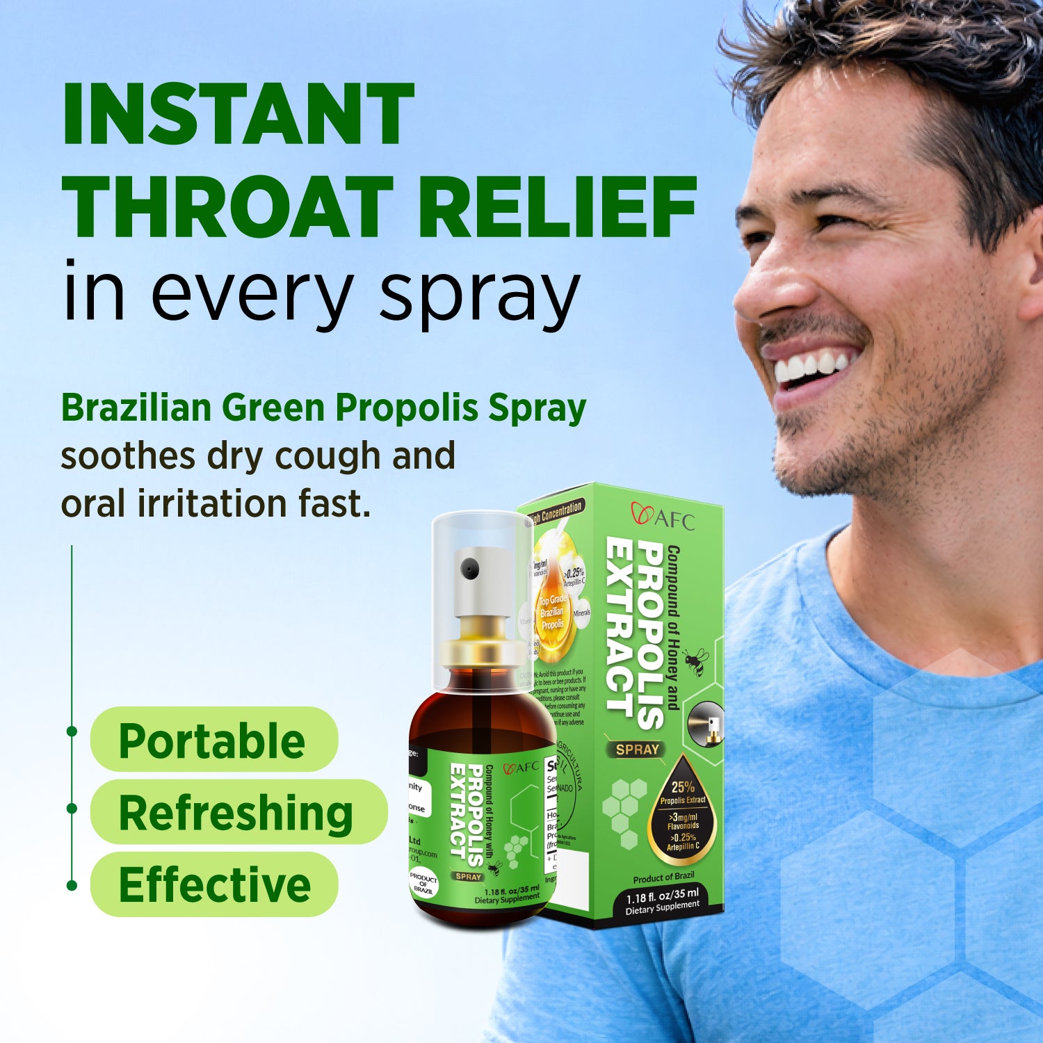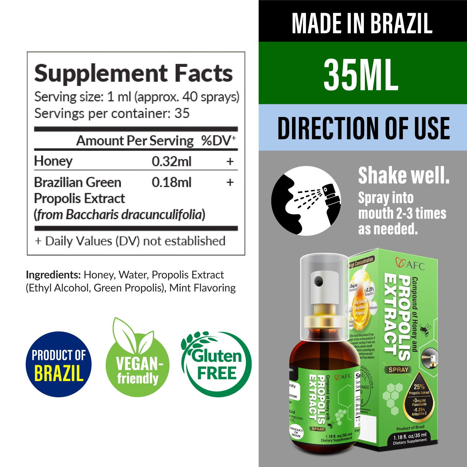 AFC Brazilian Green Propolis Spray 35ml-For Gum Inflammation, Dry Sore Throat & Bad Breath - Lifestream Group US