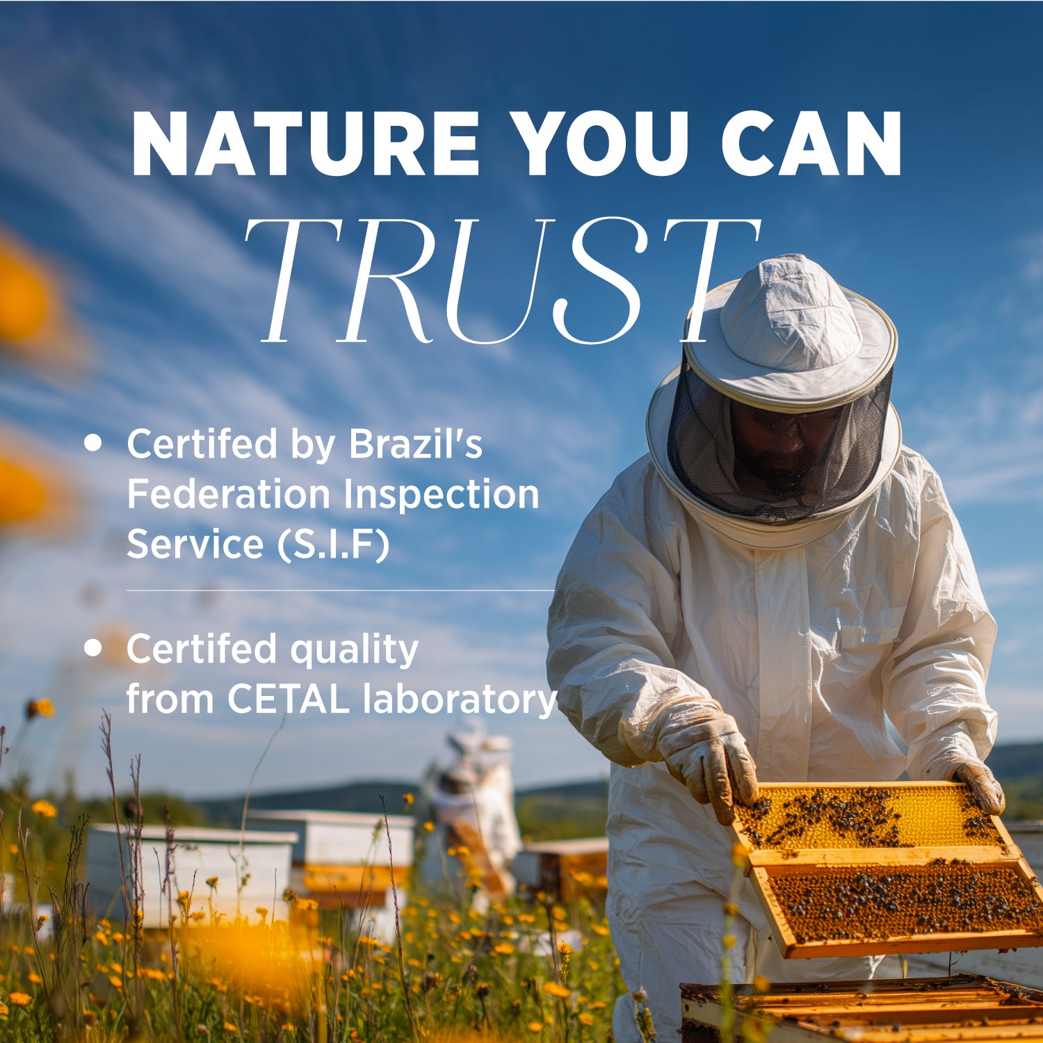 • 安全,经巴西联邦检验局 (SIF) 认证:不含麸质,不含人工防腐剂。经农业部联邦检验局认证,对蜂箱产品进行科学控制检验,符合巴西食品法。