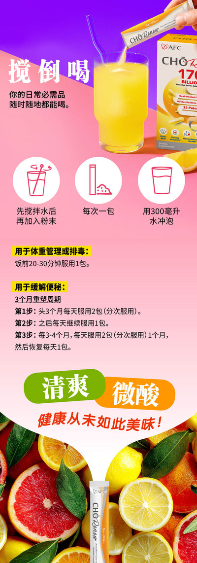 用于体重管理或排毒目的:午餐或晚餐前服用 1 袋。