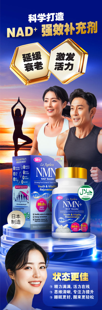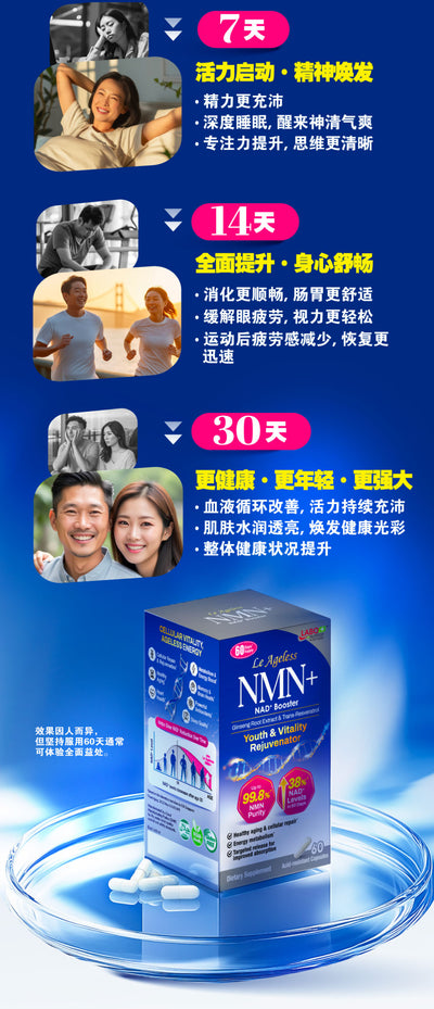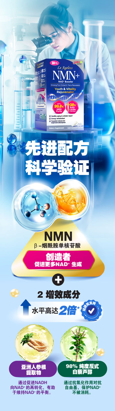 LABO Nutrition Le Ageless NMN+ with NAD+ Boosters for Anti Aging Vitality Energy Metabolism Brain Heart Sleep 60 capsules