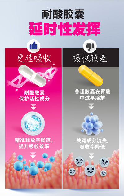 • PRECISION DELIVERY WITH DRcaps TECHNOLOGY: Our acid-resistant DRcaps® ensure that the active ingredients survive stomach acid and release in the intestines for enhanced absorption and consistent results.