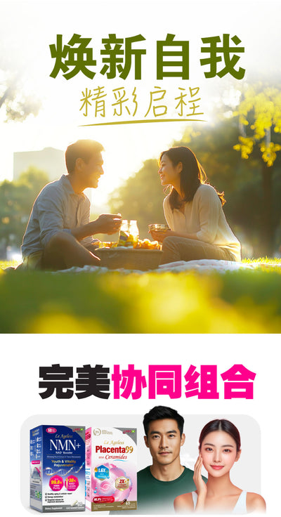 NMN aids in cell renewal, while bioactive peptides in Le Ageless Placenta99 nourishes the body from within, supporting skin health and overall vitality.